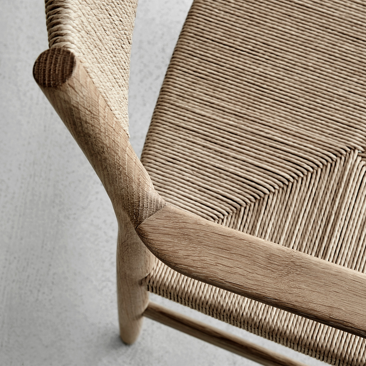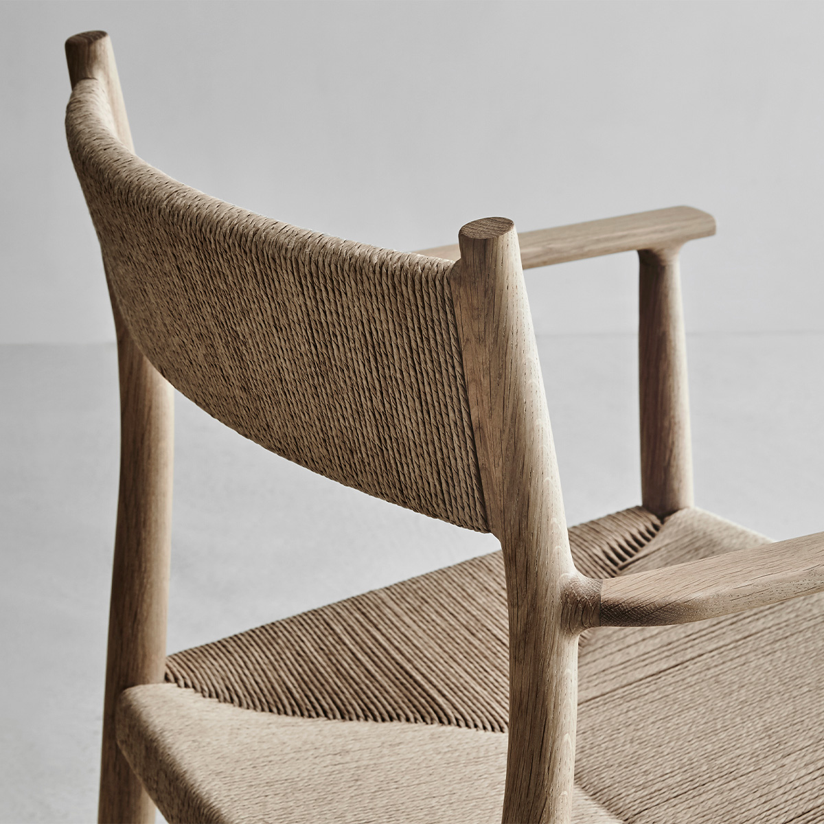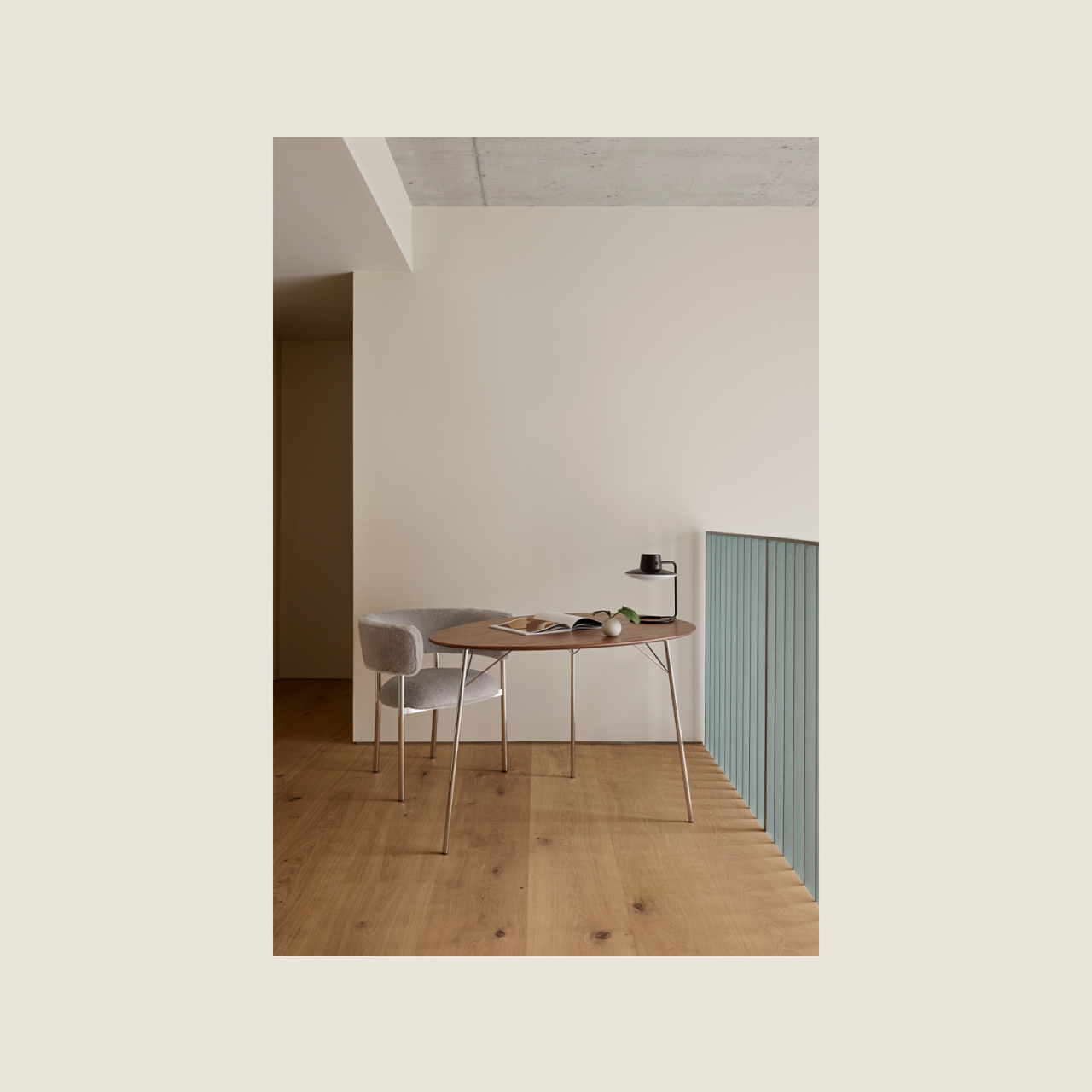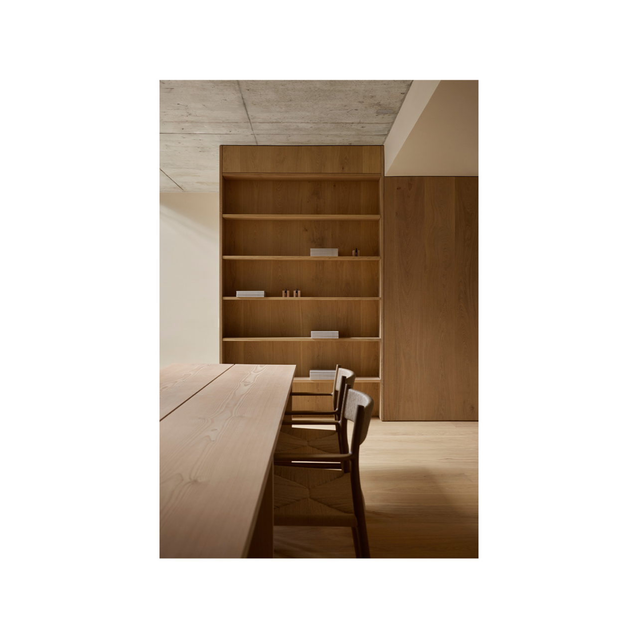 Among the curated furnishings, the Arv Dining Chair and Arv Lounge Chair by Brdr. Krüger, designed by David Thulstrup, holds a prominent place. The collection embodies the same timeless craftsmanship that defines the apartment itself. Its gently curved backrest and organic joinery echo the architectural language of Thulstrup’s design — honest, tactile, and deeply rooted in Danish tradition.