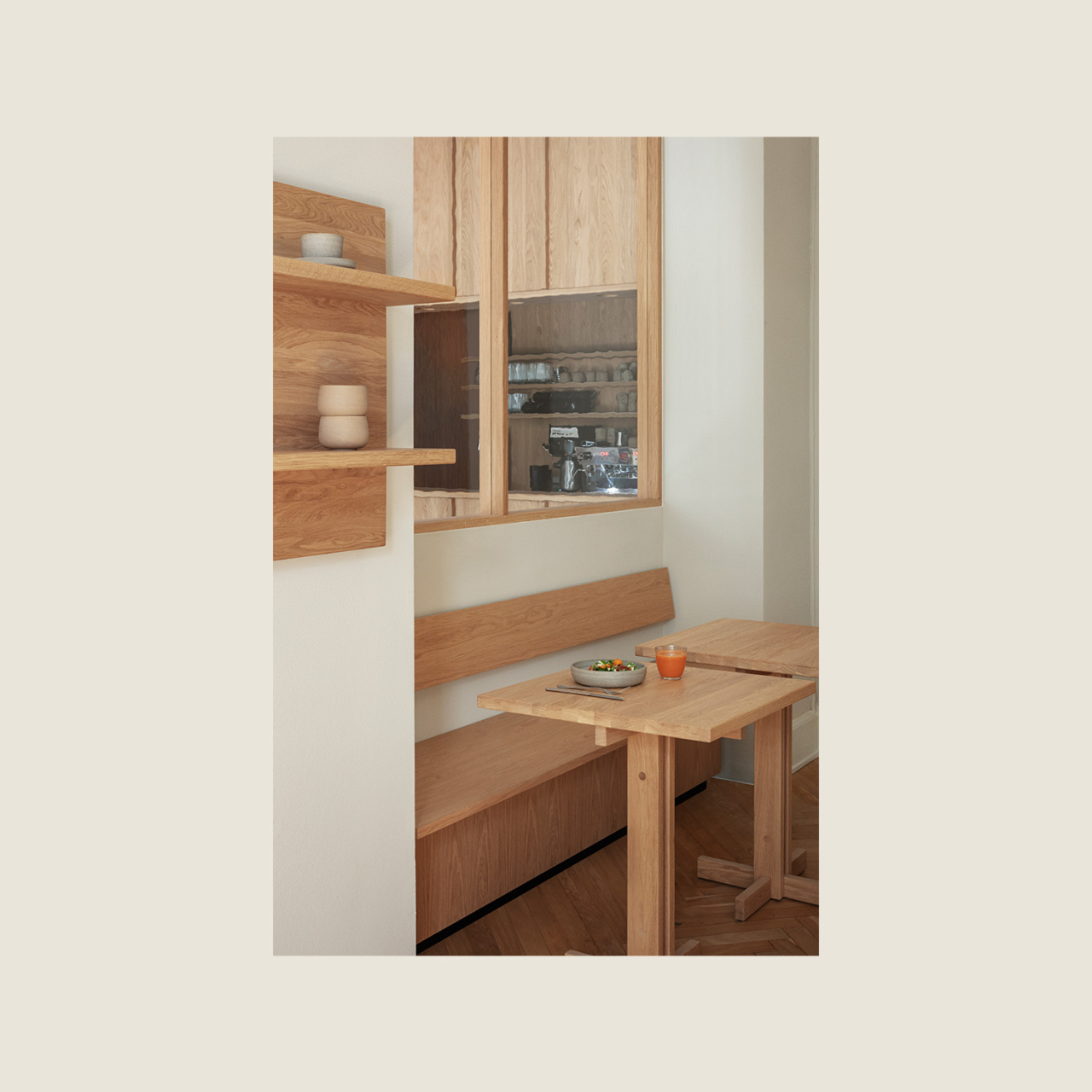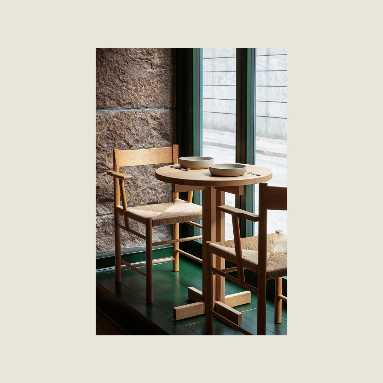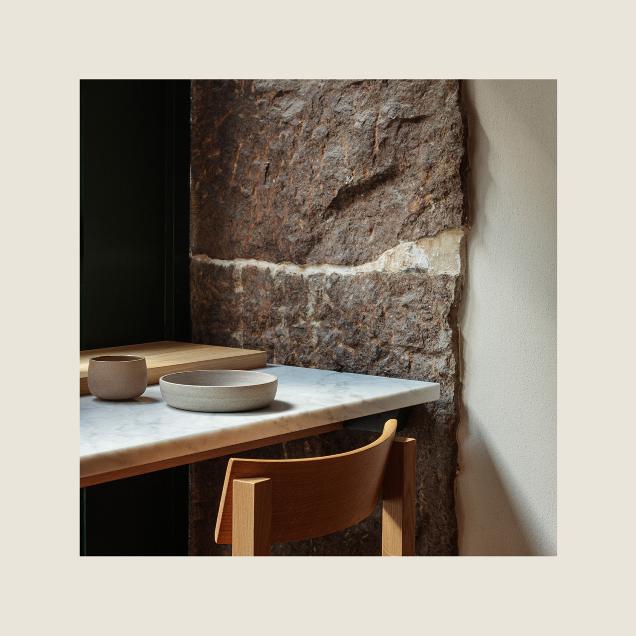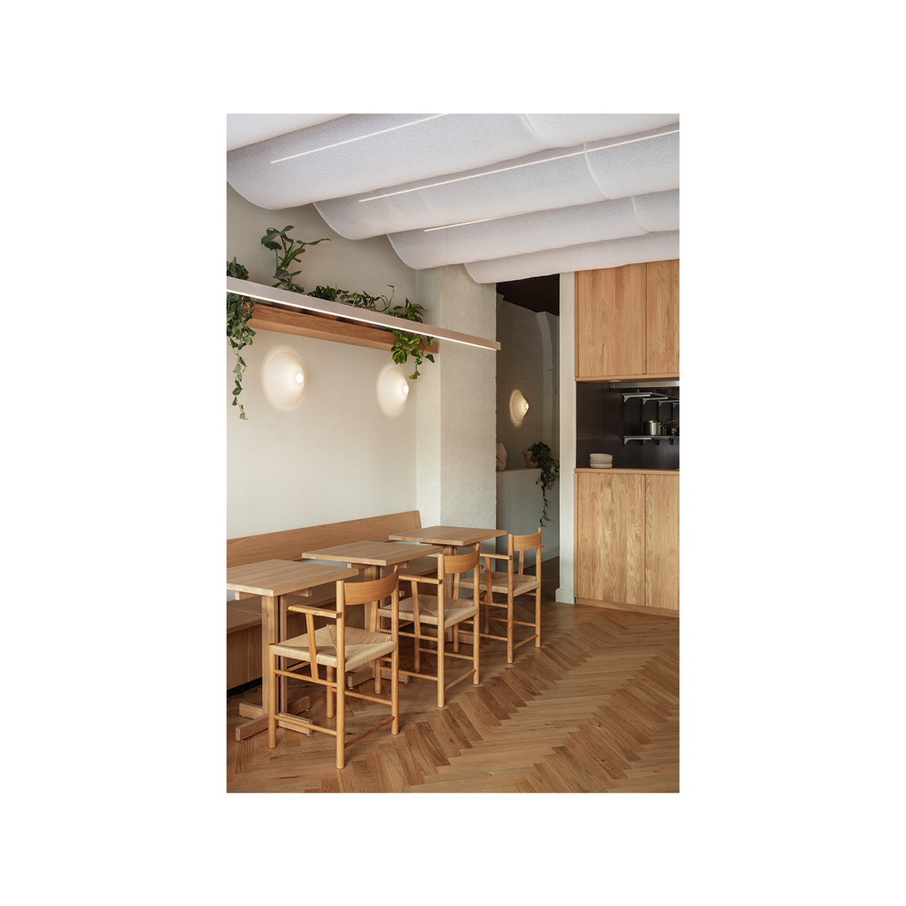 As part of the redesign, the F Chair was thoughtfully selected for its balance of functionality and refined character. Its sculptural silhouette and crafted wooden frame complement the café’s tactile materiality, while its comfort makes it ideal for long stays — whether guests are working, meeting, or simply enjoying a moment alone.