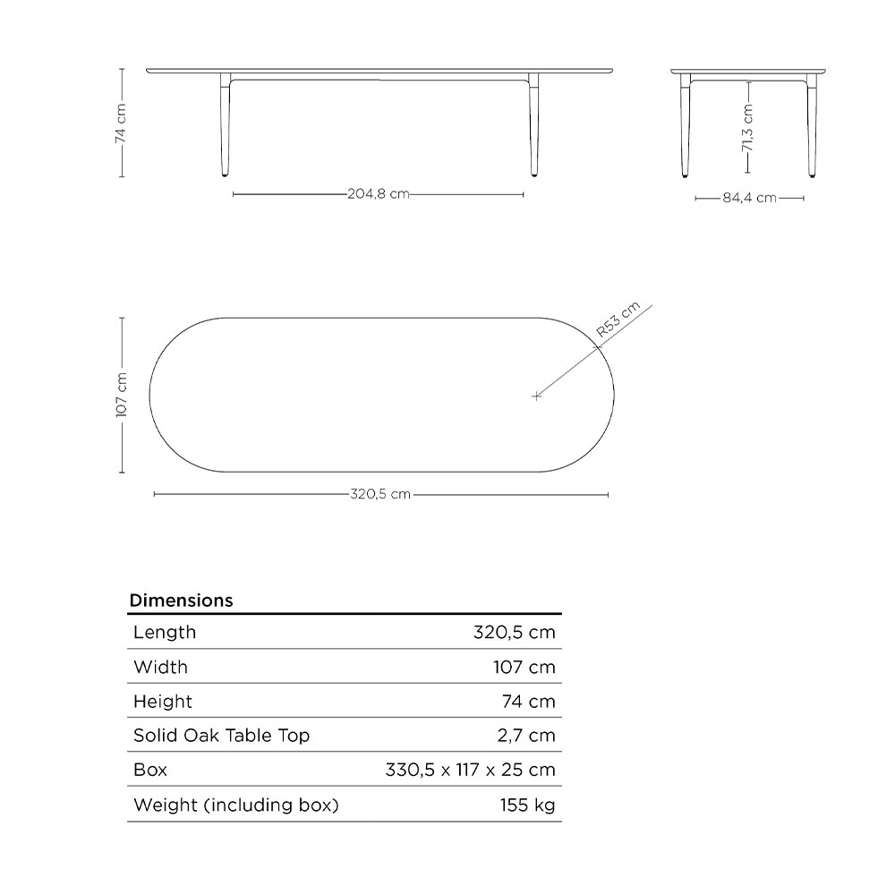 With a wider and longer tabletop and optional rounded ends, the Arv Plus Table offers additional seating—two extra seats at each end—and is available in multiple sizes, comfortably seating 8 to 16 people.