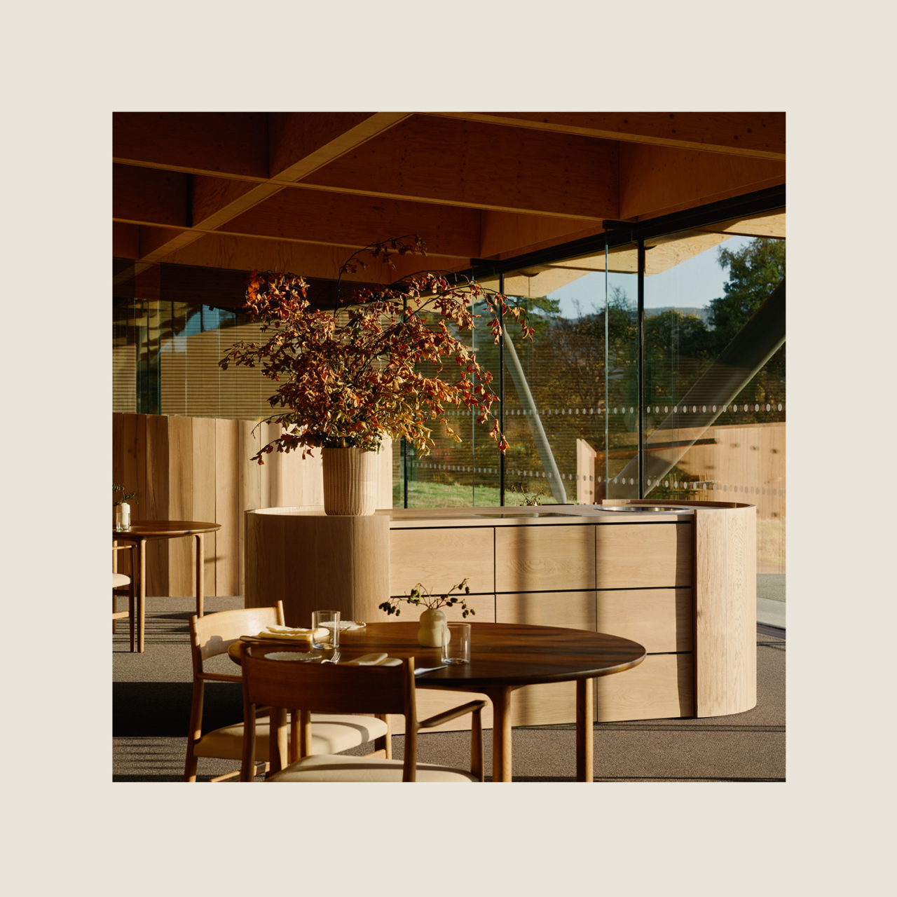 With an open kitchen at its heart, the interior blends with the undulating hills of Speyside, creating a fluid connection between the landscape and the culinary experience. The ARV Collection by David Thulstrup defines the space with a refined yet welcoming atmosphere. Crafted with attention to detail, the furnishings are thoughtfully chosen for their comfort, durability, and enduring beauty.